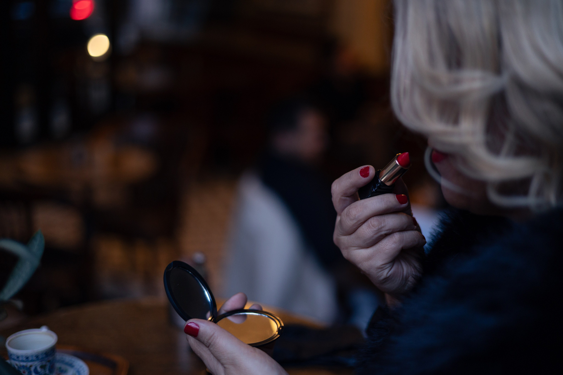 Быстрым глотком опрокидываешь в себя кофе и подносишь к губам красную помаду.